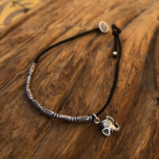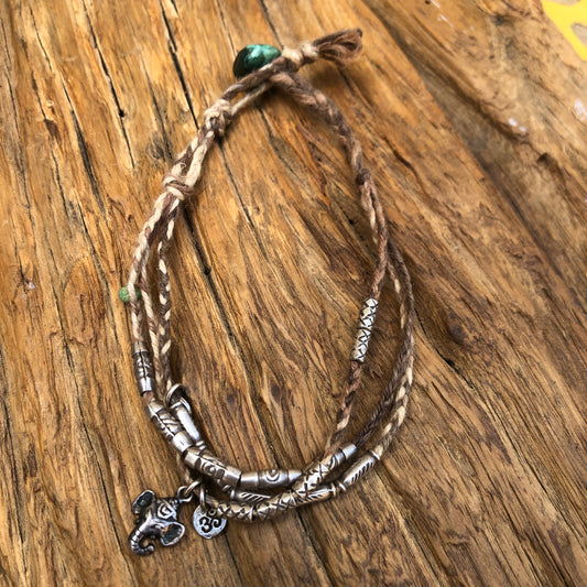 Hilltribe Silver Beads Ganesha Charm On Braided Linen Cord