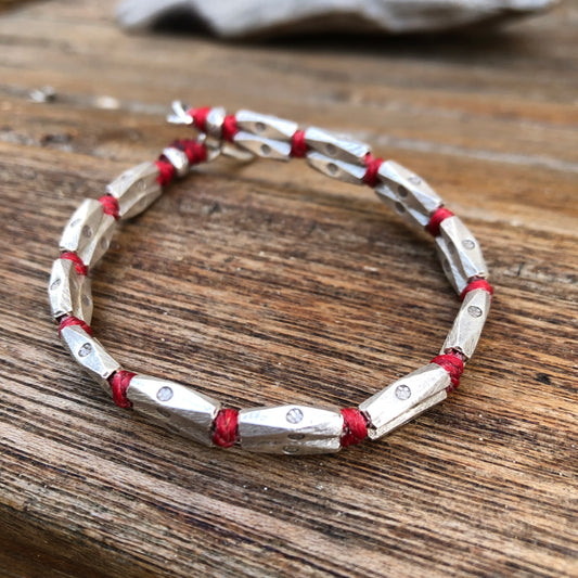 Solid Hilltribe Silver Beads On Linen Cord Bracelet