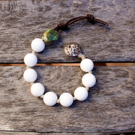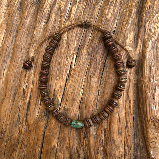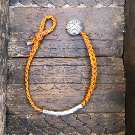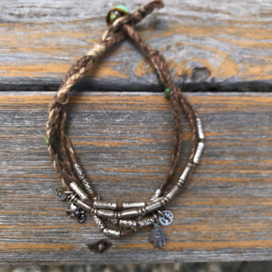 Hilltribe Silver Beads, Arizona Turquoise On Tan Leather Cord