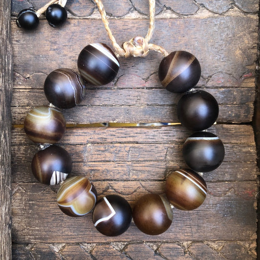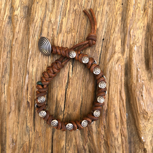 Vintage Bodhi Seed Beads On Leather Bracelet