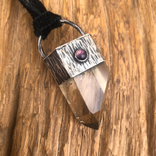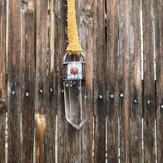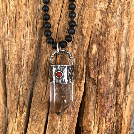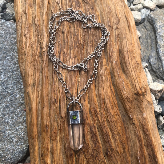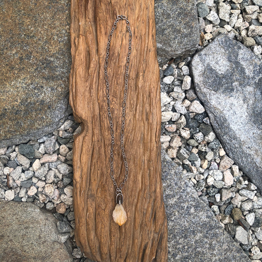 Citrine Crystal Point Sterling Silver Chain Long Necklace