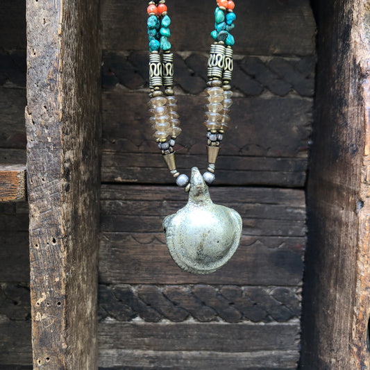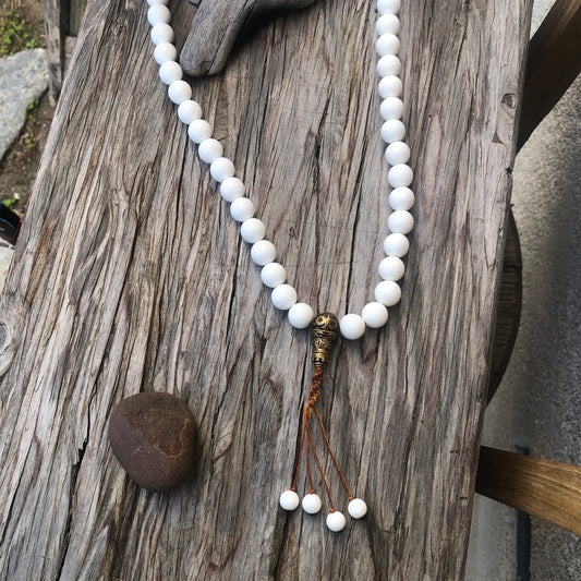 Round Seashell Raw Turquoise And Copper Dragon Beads 108 Praying Mala