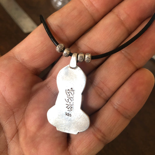 Silver Buddha pendant On Black Adjustable Leather Cord