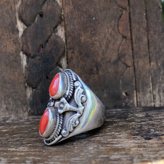 Vintage Red Coral Silver Ring